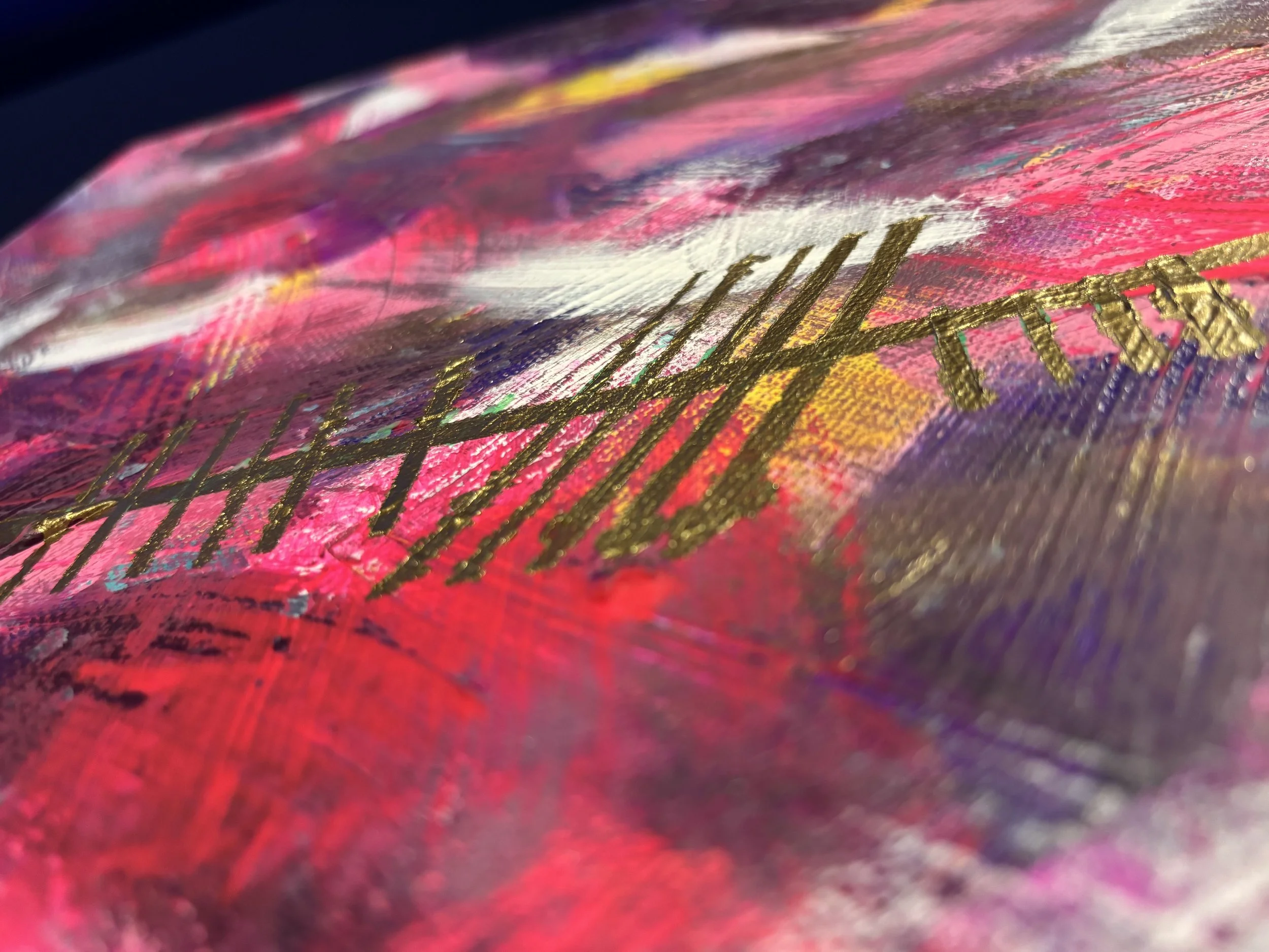 Working primarily with acrylic and spray paint, Mary builds each piece slowly, layering colour, movement, and instinct until the work settles into its own visual language. The result is expressive, modern abstraction designed to live easily within a home.